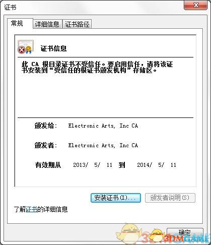 4、再次打开Extra目录,双击Electronic Arts, Inc CA.crt那个证书文件,按图示操作下一步到最后导入成功。(注意:必须选受信任的根证书颁发机构)