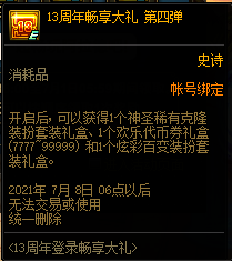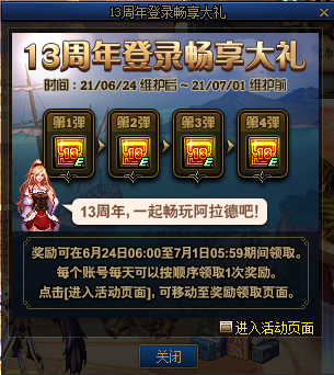DNF13周年快来了,在13周年上线的时候,开启了13周年登录畅享大礼活动,玩家只要在13周年庆期间登录游戏就可以领取大礼包,下面就给大家带来DNF13周年登录畅享大礼活动介绍。