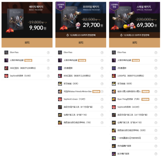 本游戏为买断付费制,官方承诺不会售卖影响平衡的道具,类似于黑沙,购买各个档位的产包后才可进游戏,买断分为3档,类似于普通版,高级版,豪华版,价格大概在66,200,440左右,最低是普通版,每个买断礼包内容另外在群内公布,只有购买产包才可在12月9日提前创建角色,高级豪华版产包,截止时间为12月8号,之后会下架无法购买。