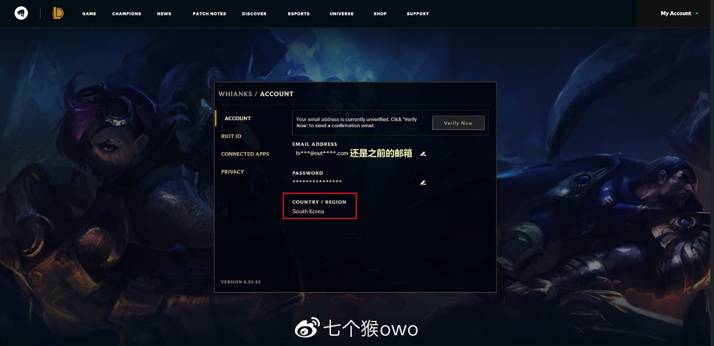 这个时候再使用刚刚注册的PBE账号来登录拳头账号,就可以看到该账号的归属地为South Korea(韩国)。