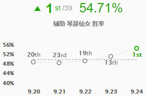 琴女的胜率在9.24版本提升12位成功位于版本的第一,辅助琴女在新版本成功崛起。